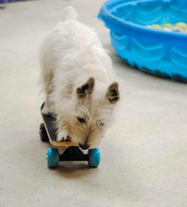 I am also quite proud of our Puppy Play School. I have dreamed of a way to educate pet parents of the importance of investing in their dogs when they are puppies, in terms of positively socializing and training to help their dogs be stable and confident as they age. PPS will be one year old in August and it is being strongly recommended by area vets to their clients. Many of the PPS graduates enter our daycare program and we find that they are much more responsive to handlers and much better behaved than other youngsters who didn’t attend.